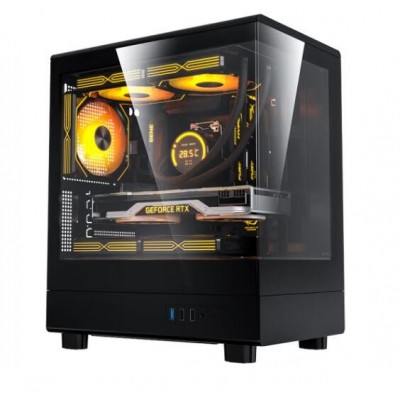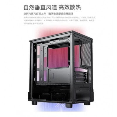 爱国者V60 海景房机箱全景无立柱MATX高颜值240水冷台式电脑台式机主机箱 黑色(显卡限长305mm)