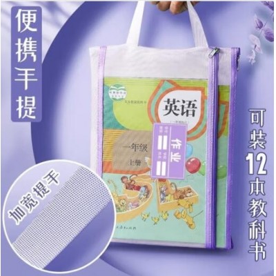 透明网格学科科目分类袋双层A4文件袋小学生试卷收纳袋拉链袋透明书袋课本分科学习资料手提袋 【双层女生款4个】