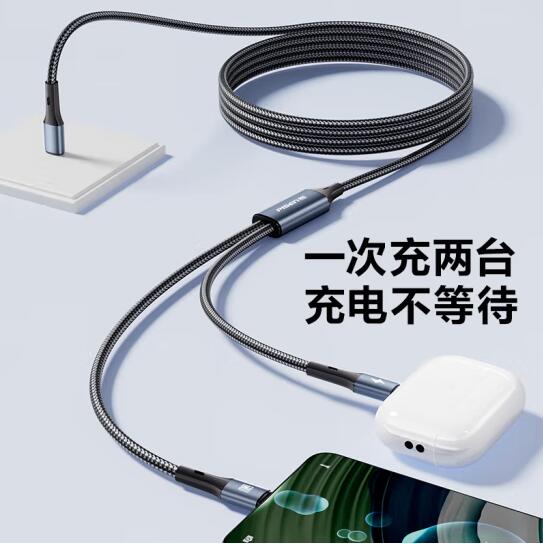 双Type-C数据线二合一PD60W充电线一拖二车载适用苹果iPhone16pro/15/14手机华为70小米笔记本ipad